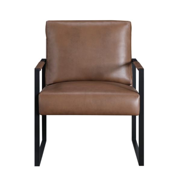 Add a touch of modern sophistication to your space with this stylish metal accent chair upholstered in sleek brown faux leather. Designed for both comfort and contemporary flair, this chair features a minimalist metal frame with clean lines, perfectly balancing durability and elegance. The rich brown faux leather offers a luxurious look and feel, while being easy to maintain, making it ideal for busy households. Whether used in the living room, office, or bedroom, this accent chair complements a wide range of décor styles, from industrial to modern and mid-century.