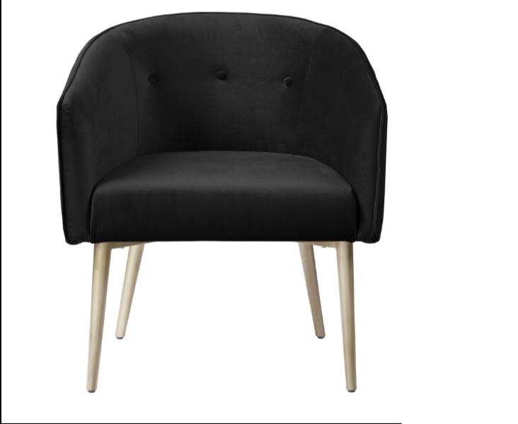 Put together a cool retro design with modern materials and you have got the Nikki accent chair. Eye-catching inky black velvet fabric combines easily with platinum painted legs to look great without compromising on comfort.