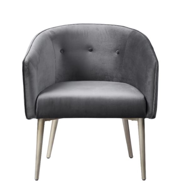 Put together a cool retro design with modern materials and you have got the Nikki accent chair. Eye-catching stylish grey velvet fabric combines easily with platinum painted legs to look great without compromising on comfort.