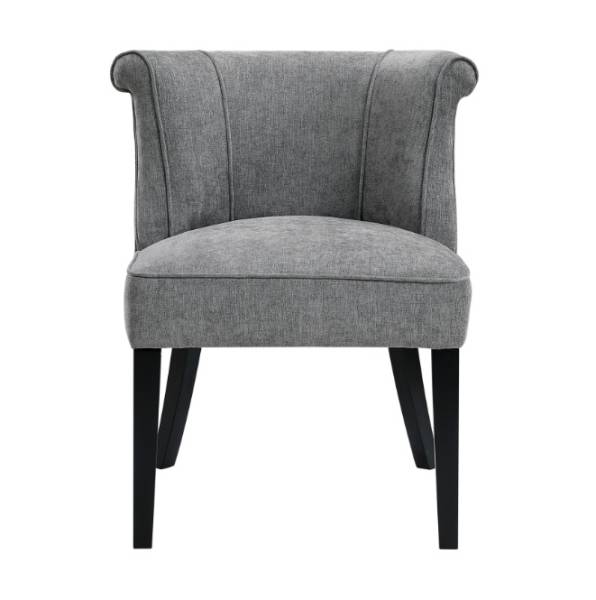 Elevate your home décor with this sophisticated upholstered accent chair, designed to provide both comfort and style. Featuring a gracefully curved back with subtle piping detail, this chair adds a touch of classic elegance to any room. The neutral-toned, textured fabric upholstery complements a variety of interior styles, while the generously padded seat ensures comfortable seating. Sturdy dark wood legs provide a stable and stylish foundation, making this accent chair a perfect addition to your living room, bedroom, dining area, or entryway. Enhance your space with this versatile and chic accent piece that seamlessly blends functionality with refined design.