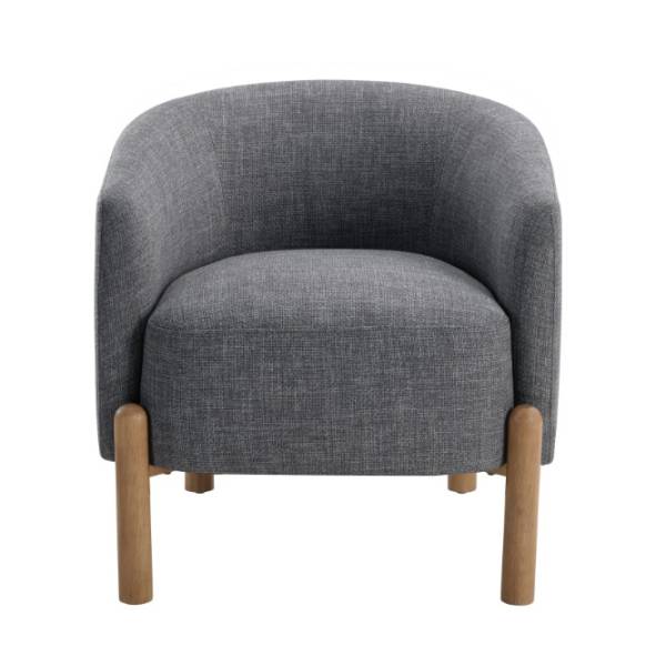 Upgrade your living space with this contemporary gray fabric barrel chair, designed for both style and comfort. Featuring a durable plywood frame and foam padding over pocket coils, this chair provides exceptional support and a luxurious seating experience. The textured gray fabric upholstery adds a touch of modern sophistication, while the attached back and seat cushions offer a clean, tailored look. The solid wood legs in a light brown finish provide a warm and stylish foundation, complementing any décor. With a 300lb weight capacity and easy assembly, this chair is perfect for adding a cozy and elegant touch to your living room, bedroom, or reading nook.