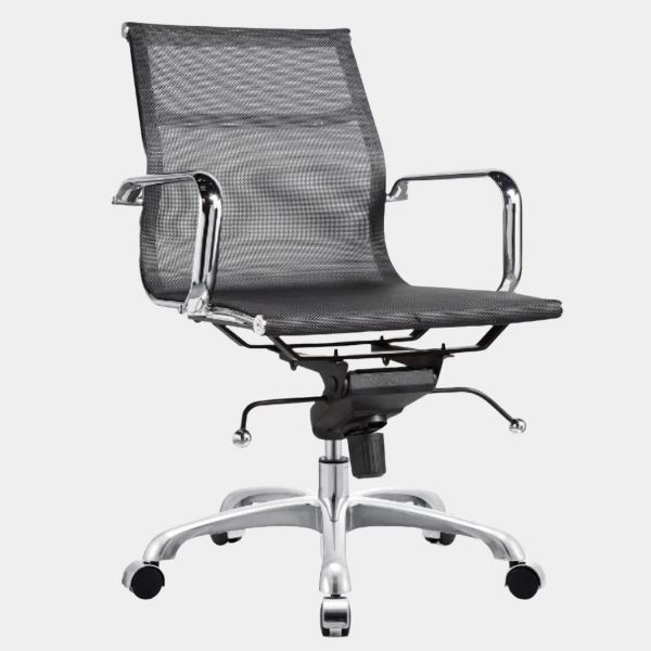 Mesh-styled office swivel chair with stunning arms giving a unique look to the office. The base features an adjustable system providing maximum comfort at any level.