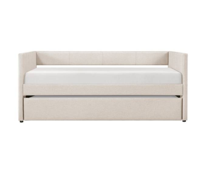 Whether tucking in for the night or lounging while reading a good book, the Trudy Collection is a versatile option for your bedroom space. The modern lines of the daybed lend to myriad decorative aesthetics ranging from Modern to Transitional while the Beige hue of the fabric upholstery provides further complement to your space. The additional sleep space the included trundle can provide for your home allows for convenient access when it is needed and discrete storage when it is not in use.