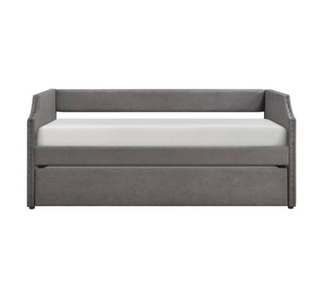 Modern traditional styling blends classic accent and clean lines to create the look of the Shiloh Collection. The dark gray textured fabric of the daybed is accented with nailhead detail that defines the profile of the piece. Whether used for sleeping or relaxing, the daybed’s design allows for placement in a number of room sizes and configurations, while the under-bed trundle pulls out to accommodate your additional sleep space needs.