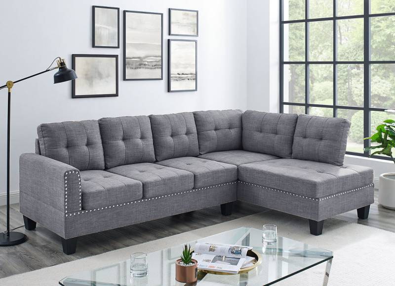 Introducing the Toronto Sectional in Grey Fabric, perfect for any modern living room. This sectional features a Right Hand Facing Chaise for maximum relaxation. It provides ample seating space for gatherings and movie nights. Made with high-quality fabric, this sectional is durable and easy to clean. The beautiful grey color completes the sleek look of this stunning piece of furniture.