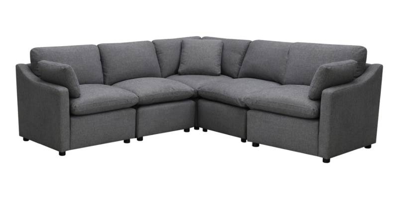 Bored of your living room? The Pippa Collection offers endless opportunities to reinvigorate it thanks to its stylish modular design. This 5-piece set features a left side arm chair, two armless chairs, and a corner seat, allowing you to create the perfect seating arrangement for any occasion. Whether you prefer a spacious corner sectional for entertaining or a cozy loveseat for relaxation, the Pippa has you covered. Wrapped in sumptuous textured grey chenille fabric and accented with three coordinating lumbar pillows, the neutral palette and clean lines of the design adds a touch of modern sophistication to any space. With fully removable and reversible back and seat cushions plus removable cushion covers, maintenance is a breeze, ensuring your sectional’s appearance stays fresh and inviting. Moreover, the blend of high density foam and super soft feather down blend filling guarantees superior comfort for lounging in style.